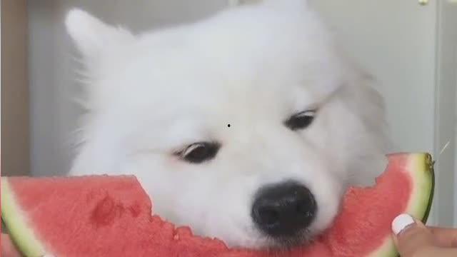 当一块新鲜的哈密瓜出现在萨摩耶面前时,它那双明亮的眼睛会瞬间变得闪闪发光。它小心翼翼地用鼻子嗅了嗅,然后伸出舌头舔了舔,仿佛在品味着什么美味。